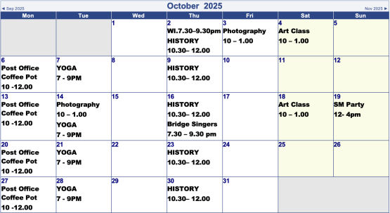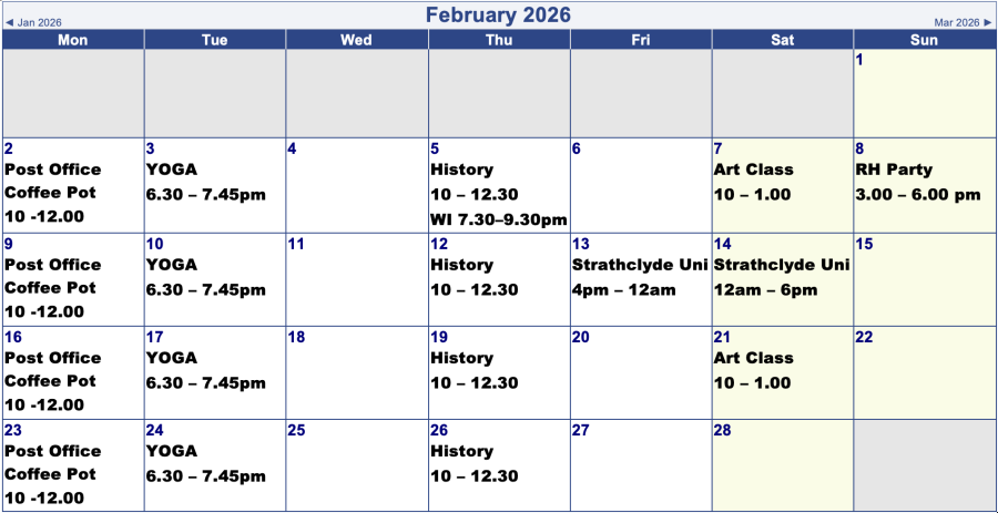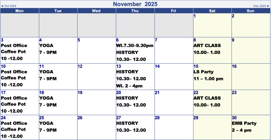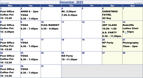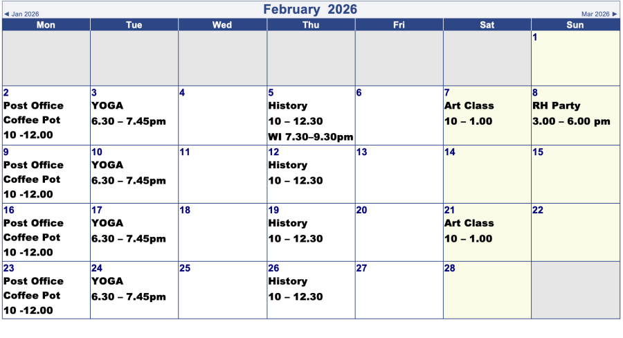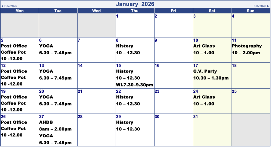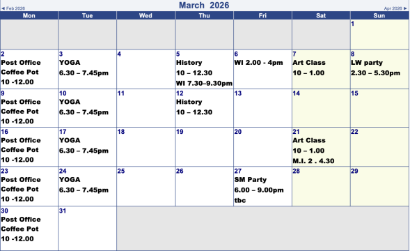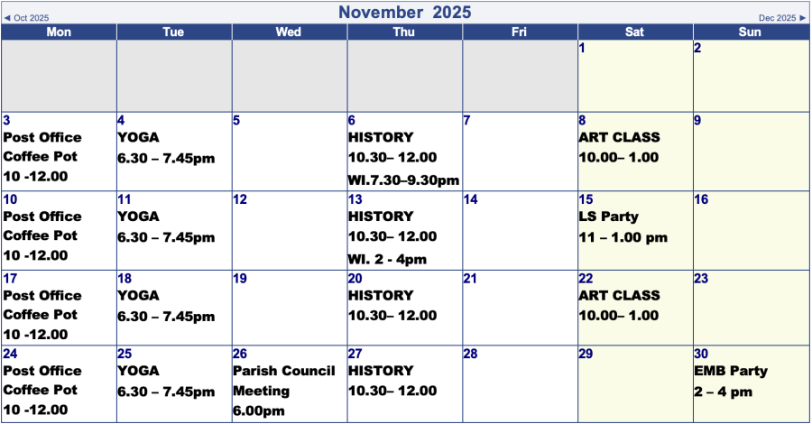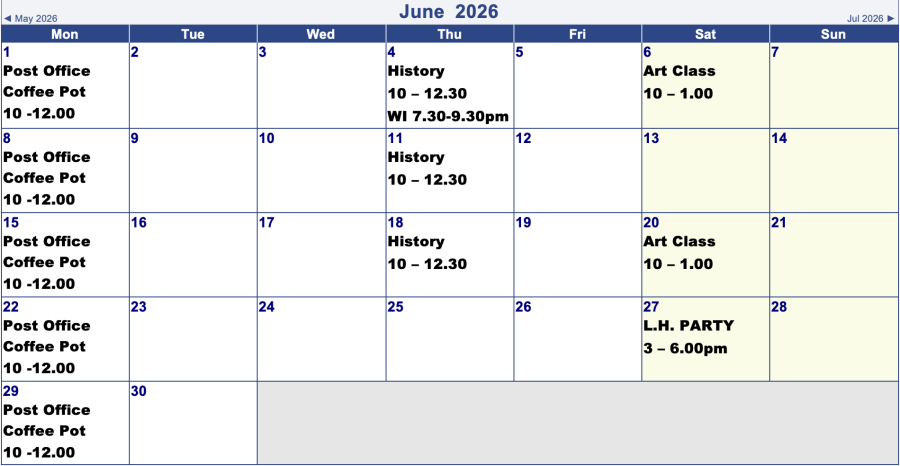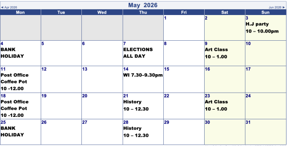 Village Hall Bookings for Next 2 Months